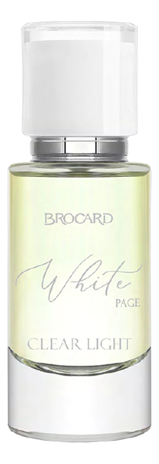 Brocard White Page Clear Light (Ясный свет) — цветочно-пудровый женский парфюм, выпущенный в 2024 году российским парфюмерным брендом Brocard в рамках коллекции White Page. Аромат легкости и свободы. В воздухе звенит хрусталь, все вокруг становится ясным и прозрачным, словно глоток чистейшей воды из горного источника. Свежий зеленый аккорд наполнен энергией и бесконечной нежностью эдельвейсов и ландышей. Аромат — символ изящества и абсолютной женственности.
