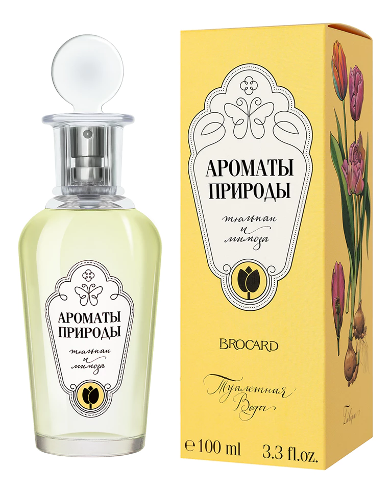 Аромат Tulpan I Mimoza выпущен российским парфюмерным брендом Brocard в рамках парфюмерной коллекции Fruttissimo. Парфюм посвящен прекрасному женскому дню 8 Марта, сочетает в себе два неповторимых запаха: тюльпана и мимозы, которые олицетворяют весну и женственность. Композиция представлена в концентрации туалетной воды, обладает легким, свежим, окрыляющим звучанием, обволакивает нежностью, излучает позитив и солнечный свет.