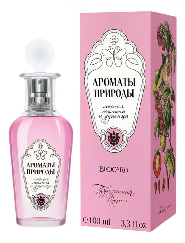 В запахе гармонично сочетается ягодная сладость и свежесть воздуха, росистая прохлада зеленых мхов и пряность цветущей душицы. Композиция Brocard Ароматы природы Лесная малина и душица дополнена нотами карамели, сладкой земляники, шиповника, фиалки и мускуса.