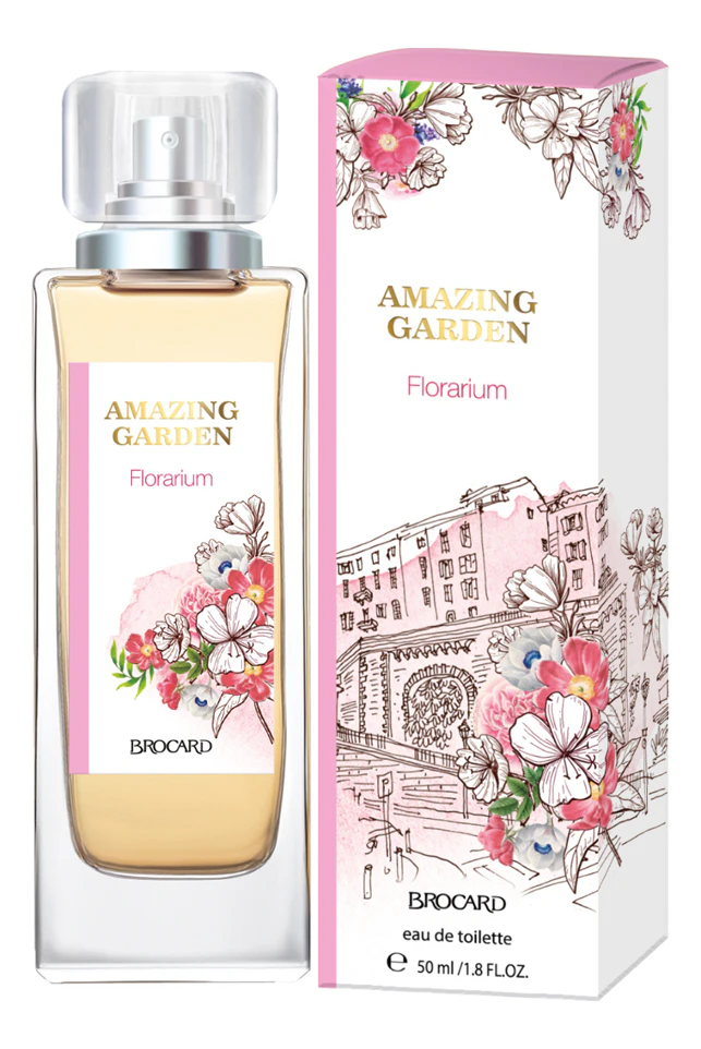 Brocard Florarium — красивый и романтичный женский цветочно-фруктовый аромат, выпущенный в 2022 году российским парфюмерным брендом Brocard. Он дарит свежесть трав, благоухание цветов, ароматы сочных фруктов и ягод. Amazing Garden приоткрывает дверцу в мир, где царит яркая феерия волнующих летних запахов. Цветущий сад наполнен ароматами: яркие цветы, крошечные бутоны, тонкие ветви, тянущиеся к солнцу... Жаркий полдень вступает в свои права и окутывает пьянящими ароматами лета.