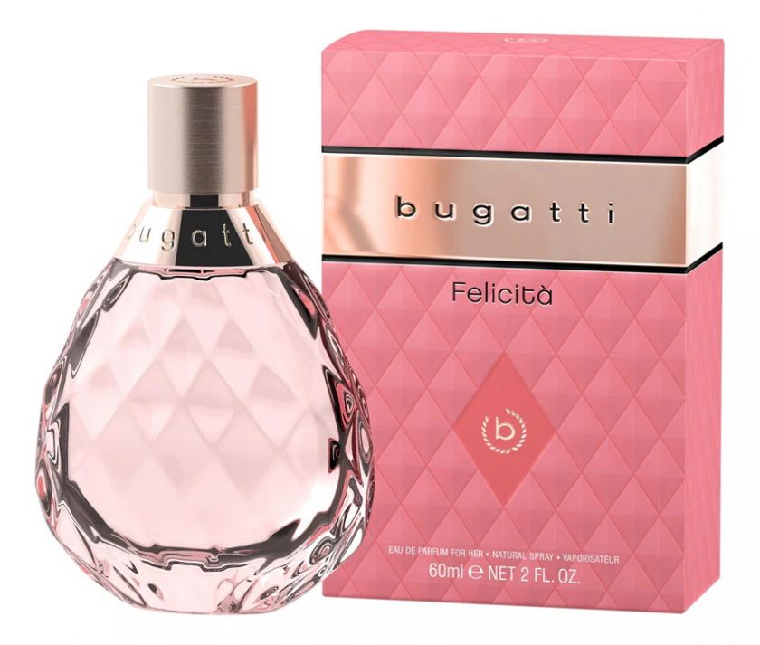Bugatti Felicita — цветочный аромат, выпущенный в 2024 году немецким модным домом Bugatti. Сочетание каплевидного силуэта, рельефа изящной надписи и матового колпачка делают флакон Felicità настоящим произведением искусства, которое взывает к чувствам и вызывает предвкушение уникального аромата.