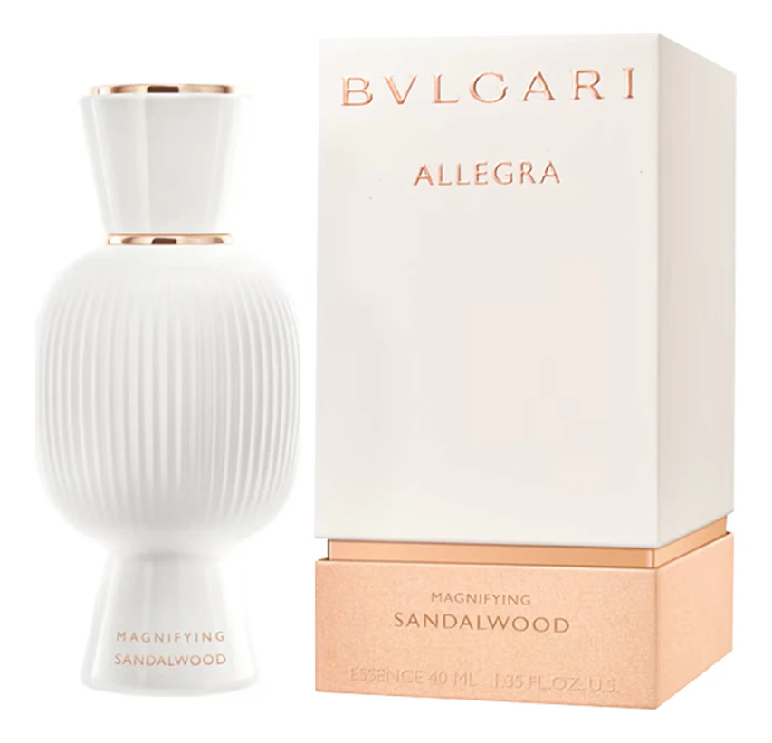 Bvlgari Allegra - Magnifying Sandalwood — элитные роскошные концентрированные духи с древесным ароматом для женщин и мужчин, представленные в 2023 году парфюмерной линией знаменитого ювелирного дома Bvlgari. Роскошный мягкий завораживающий и уникальный унисекс аромат Allegra - Magnifying Sandalwood – создан в дополнение к парфюмерной линии Allegra, так как серия Allegra – Magnifying раскрывает новые грани ароматов основной линии, когда вы наносите ее поверх, и позволяет создать свой собственный индивидуальный фирменный аромат.