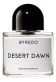 Byredo Desert Dawn — древесно-пряный унисекс-аромат, выпущенный в 2024 году шведским брендом Byredo. Этим ароматом бренд утверждает, что творчество может процветать в изоляции. Как и в природе, воображение то набирает обороты, то отступает. Но за каждым отступлением, как за закатом, обязательно наступает рассвет. Ароматическая композиция с названием «Рассвет в пустыне» переносит владельца парфюма на открытую местность бескрайних просторов — место, которое можно посетить в своем сознании, где новая идея возникает в любой момент, как и рассвет.