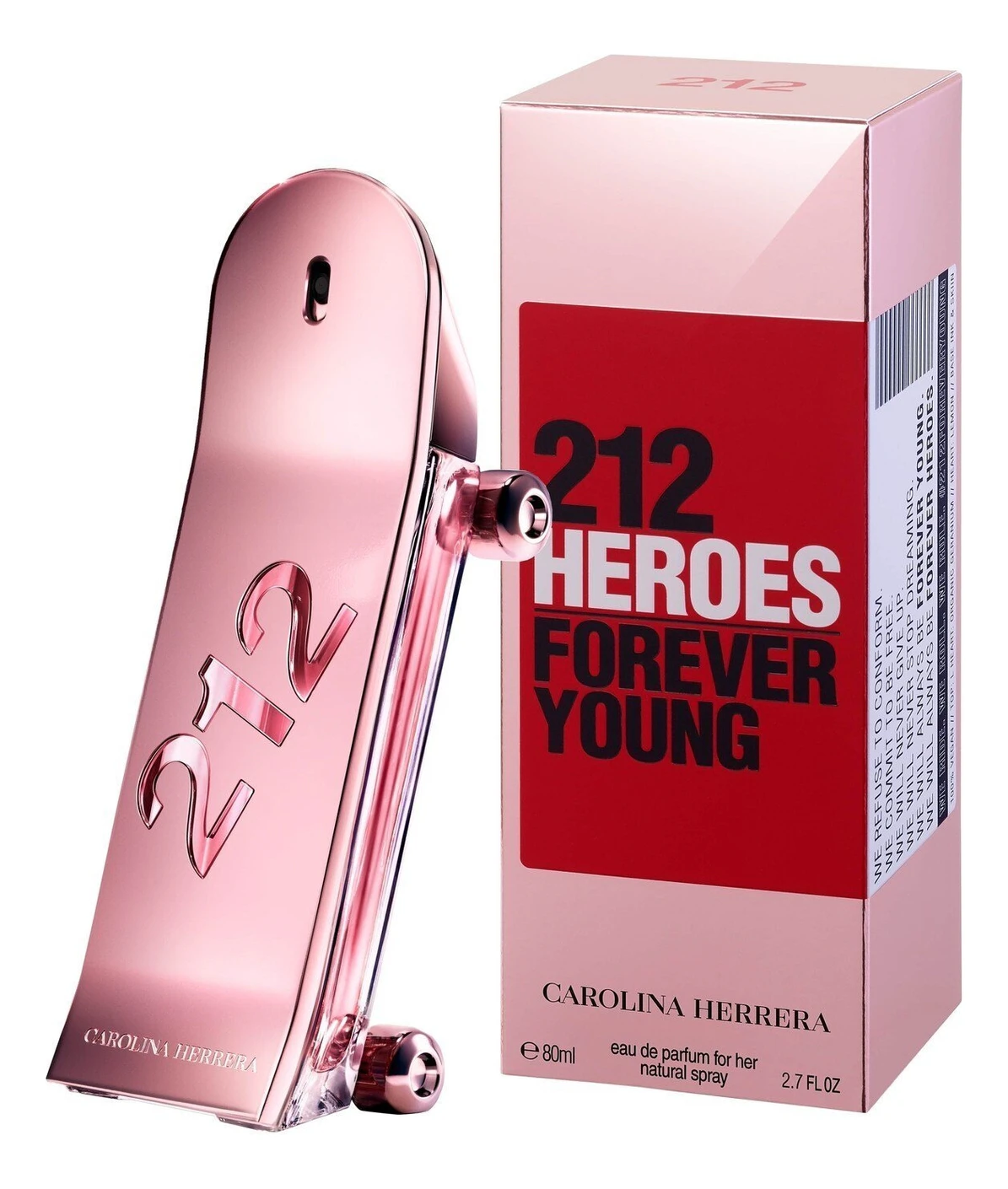 Carolina Herrera 212 Heroes — новый дуэт мужского древесно-фруктового мускусного аромата и женского цветочно-фруктового аромата представлен знаменитым американским парфюмерным брендом Carolina Herrera. Оригинальные революционные духи для него и для нее 212 Heroes — посвящены современной культуре Нью-Йорка, аромат для героев, отважных дерзких современных молодых женщин и мужчин, что отражено в новаторском виде флаконов в виде стилизованного скейта.