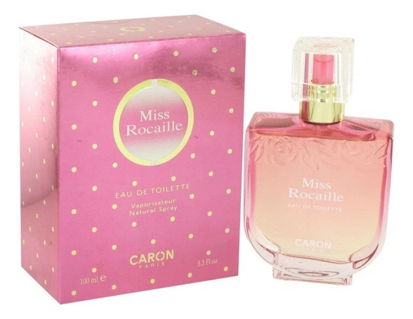 Caron Miss Rocaille («Карон. Мисс Рокаилль»). Этот волнующий аромат для женщин выпущен парфюмерным домом Caron в 2004 году. Изысканный аромат с цветочным характером представлен в стеклянном флаконе нежного розового цвета с прозрачным колпачком. Бутылочка упакована в розовую подарочную коробку в мелкий белый горошек.
