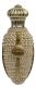 Круглая форма флакона из стекла увенчана удлиненным острым колпачком.