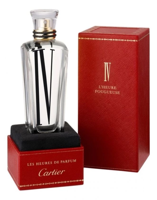 Les Heures de Cartier: L`Heure Fougueuse IV («Часы от Карьте») - аромат для мужчин и женщин от известного французского бренда по производству дорогих украшений и стильных аксессуаров Cartier. Парфюмерная композиция Les Heures de Cartier: L`Heure Fougueuse IV от Cartier была создана в 2011 году и вошла в группу ароматов шипровые.