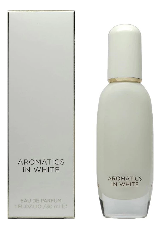 В верхних нотах Aromatics in White от Clinique играют фиалковые листья, сычуаньский перец и лабданум. В сердце угадываются мотивы пачули, флердоранжа и розы. Венчает ансамбль база из нот серой амбры, мускуса, ванили и бензоина.