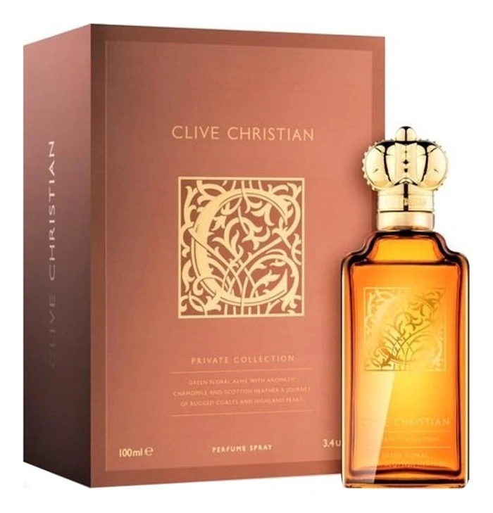 C: Green Floral – женские духи с цветочным зеленым ароматом из новой коллекции парфюмов 2017 года от бренда Clive Christian из Великобритании. Великолепный насыщенный аромат является одним из десяти парфюмов бренда, вдохновленных величием и красотой природы и ландшафта Шотландии – родины парфюмера и владельца бренда, воспоминаниями счастливого детства пропитанного дивными запахами свежего ветра и зеленых вересковых полей.