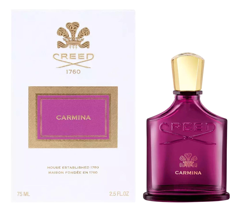 Creed Carmina — очаровательный женский фруктовый аромат с цветочно-древесными полутонами, выпущенный в 2023 году брендом Creed. Заимствуя корни дома Creed, аромат Carmina черпает вдохновение из залитых пурпурным великолепием модных альбомов Генри Крида, передаваемых из поколения в поколение в семье Крид. Композиция призвана передать дух бесстрашных и страстных женщин, увековеченных в этих рисунках, — героинь, готовых к предстоящим приключениям. Нежное и стильное сочетание цветов создает картину, достойную того, чтобы новое поколение Creed оставило свой след в истории.