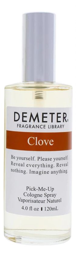 Demeter Fragrance Clove — тонкий, чуточку бархатистый ароматический унисекс парфюм с легкими гурманскими акцентами. Аромат выпущен американским парфюмерным брендом Demeter Fragrance в 2015 году и посвящен популярной восточной пряности – гвоздике. В качестве пряности используются высушенные нераскрывшиеся бутоны тропического гвоздичного дерева. Именно им присущ яркий специевый запах с камфорными полутонами и оригинальными цитрусовыми нотками. Гвоздику, как величайшую ценность, некогда везли в Европу из Индии и Цейлона.