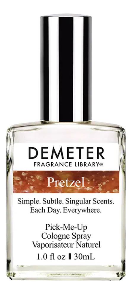 Demeter Fragrance Library специализируется на создании более чем 200 ароматов, вдохновлённых повседневными запахами и личными воспоминаниями. Pretzel — это один из самых необычных и игривых ароматов в коллекции бренда, воссоздающий запах свежеиспечённого кренделя с солью. Этот парфюм переносит в атмосферу уличных пекарен, ярмарок и праздничных гуляний, где витает аромат тёплой выпечки.