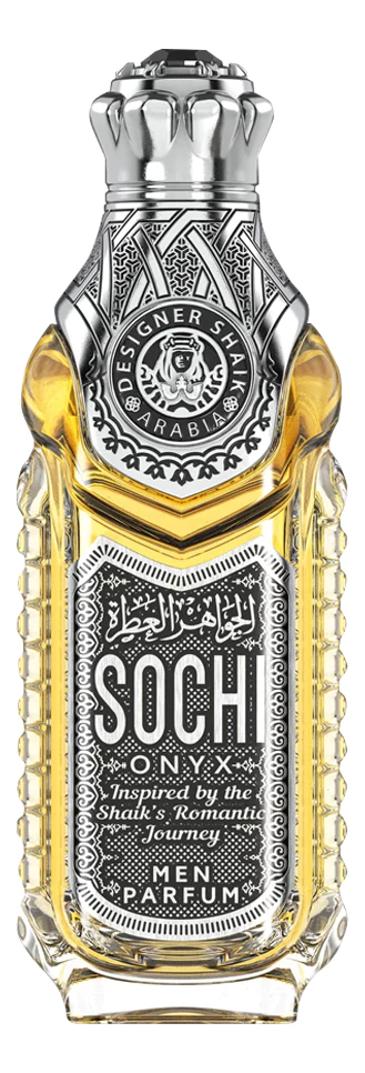 Sochi Onyx For Men — волнующий и самобытный мужской восточный аромат, выпущенный арабским парфюмерным брендом Shaik в 2019 году в рамках ароматического дуэта для него и для нее. Аромат вдохновлен путешествием из российского города Сочи к заснеженным вершинам Кавказа, где высоко в горах среди могучих хвойных деревьев раскинулась зеркальная гладь прохладных озер, где охлажденные за ночь камни согреваются днем лучами солнца, и на горизонте видно Черное море.