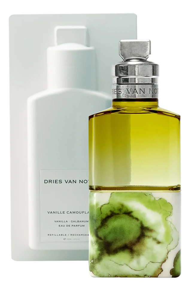 Dries Van Noten Vanilla Camouflage — травянистый ванильный аромат, выпущенный в 2024 году бельгийским модным домом Dries Van Noten, в рамках коллекции, посвященной эклектике. Созданная парфюмером Александрой Моне ароматическая композиция передает зеленую, травяную грань ванили. Это необычная и непривычная ваниль в ее первозданном виде, с яркими оттенками сочной зелени.