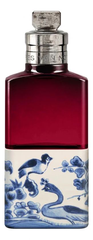 Аромат Dries Van Noten Soie Malaquais выпускается в необычном минималистичном флаконе из непрозрачной белой с голубым орнаментом нижней части и бордовой верхней.