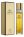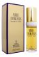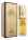 Цилиндрической формы узкий флакончик украшен золотистой крышечкой.