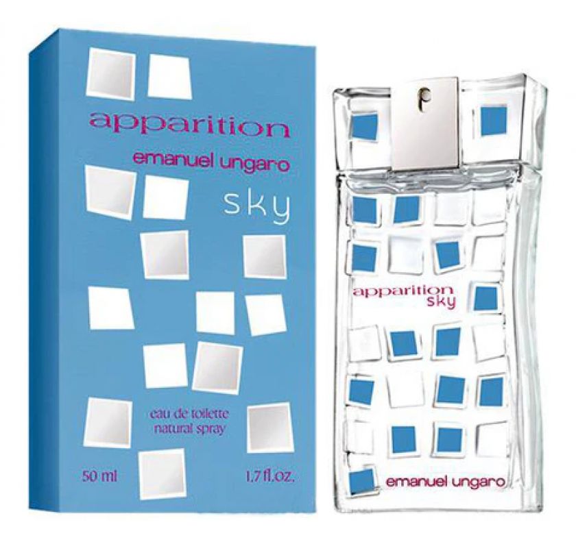 Прозрачный, искристый аромат Ungaro Apparition Sky, словно талисман, принесет счастье и радость, наполнит легкостью и подарит свободу. Свободу жить под синим бескрайним небом, где можно дотронуться до белоснежного облака, мягкого и воздушного. Обрести чувство гармонии с окружающим миром и безмятежностью, которую можно испытать устремив взгляд в небо и наблюдая за прекрасными облаками. Цветочно-фруктовый, мускусный аромат Ungaro Apparition Sky (Унгаро. Появление. Небо) выпущен в 2007 году. Прекрасное дополнение в серии Ungaro Apparition – солнечный парфюм Ungaro Apparition Sun. Цветочный мускус, экзотический старфрукт и яблочные нотки составляют сочную композицию аромата. Верхние ноты: зеленое яблоко, бергамот, карамбола. Цикламен и лотос – сердечные аккорды. Виргинский кедр и мускус – базовые ноты.