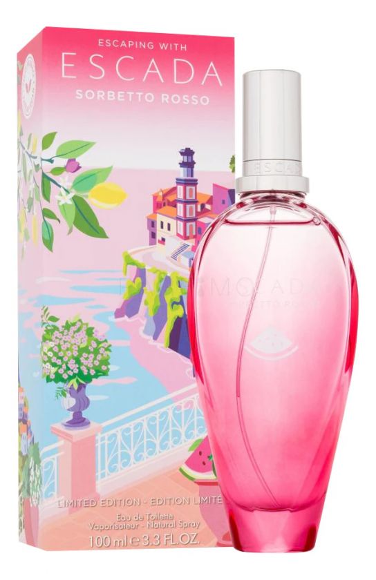 Sorbetto Rosso – элитная туалетная вода с фруктово-фужерным ароматом для женщин, представленная в 2017 году знаменитым парфюмерным брендом Escada. Легкий невероятно воздушный аромат – это ностальгическое воспоминание о лете, теплой счастливой атмосферы отдыха на южном Средиземноморье, пропитанного запахом терпкого свежего морского ветра и яркими сочными ягодными акцентами на фоне цветущих садов и рощ морского побережья.