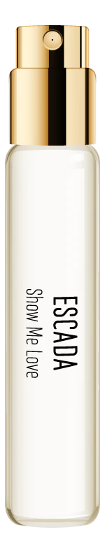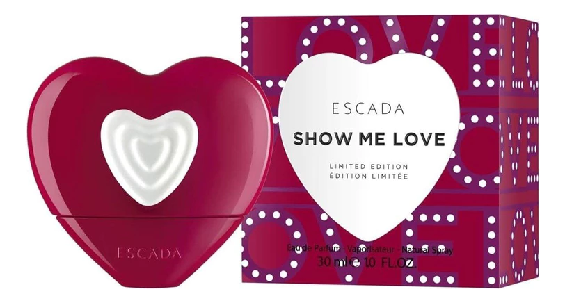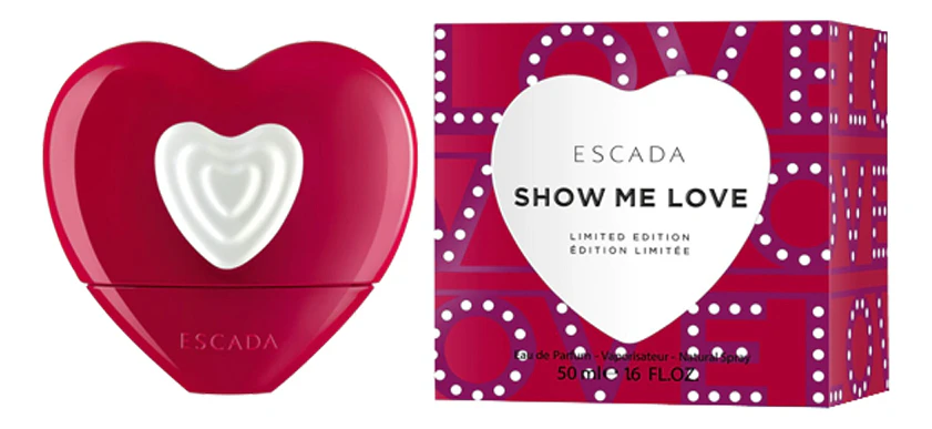 Аромат Show Me Love for Women от Escada выпущен в 2022 году. Глянцевый флакон в форме сердца, одет в бархат темно-красного оттенка, рождающего ассоциации с театром и сценой за тяжелыми занавесями. Надпись Love выполнена в стиле культовой вывески на Бродвее.