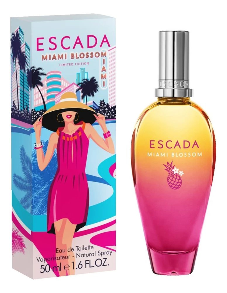 Miami Blossom — элитная туалетная вода с цветочно-фруктовым ароматом для женщин, созданная в 2019 году парфюмером Caroline Sabas для германского бренда Escada. Красочный, жгучий и соблазнительный летний ароматический коктейль, вдохновлен соблазнительным гламуром города Майами — одного из лучших курортов мира.