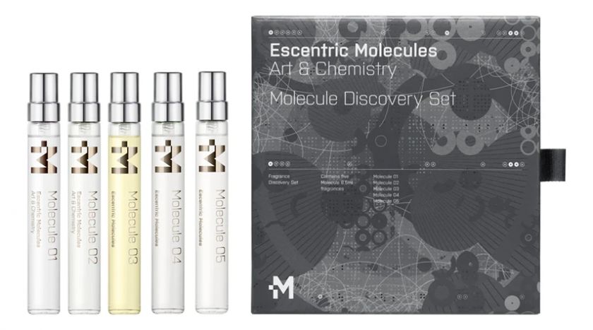 Нишевый парфюмерный бренд Escentric Molecules предалгает вашему вниманию набор Molecule Discovery Set, который позволит вам познакомиться с пятью ароматами бренда, прежде чем определиться с вашим любимым ароматом. Ароматы представлены в мини-флаконах объёмом 8,5 мл, специально разработанных для того, чтобы исследовать мир молекул и удовлетворить ваши потребности в ароматах на все случаи жизни.