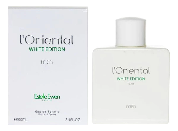 L Oriental White Edition Men – туалетная вода для мужчин от французского парфюмерного бренда Estella Ewen, выпущенная в 2011 году. Легкий, свежий древесно-фужерный аромат великолепно подходит современным спортивным молодым людям, подчеркивая их природный шарм и стильный модный образ, эффективно освежает в течение всего дня и создает радостное энергичное настроение.