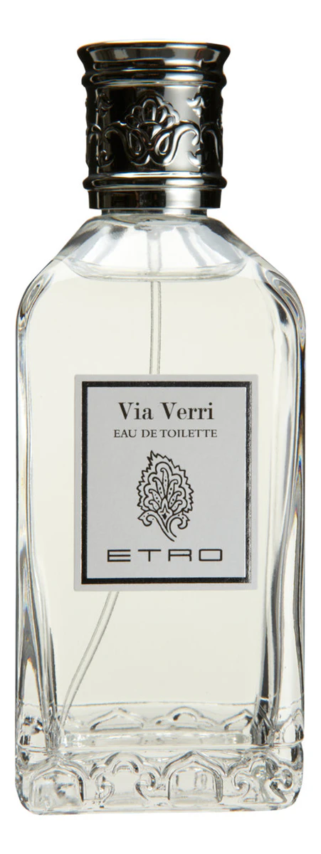 Etro Via Verri («Этро. Виа Верри») – аромат древесной фужерной группы. Его считают унисекс-композицией, запах признан и мужчинами, и женщинами. Пирамида ароматов такая: начальные ноты – лимон, гальбаниум, тмин, ноты сердца – роза, герань, цветы апельсинового дерева, конечные ноты – мускус, ветивер и ваниль.