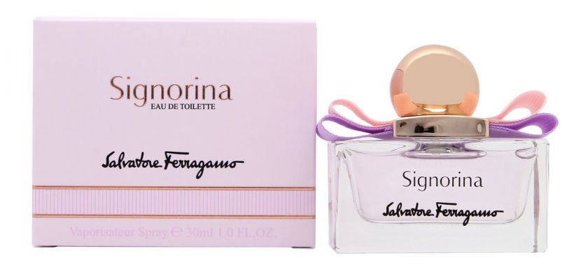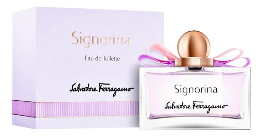 Новый аромат Signorina Eau de Toilette («Синьорина. Туалетная вода») стал олицетворением прекрасной молодой девушки. Это отличный букет для романтичных натур. Он не лишен чувственности и выражает ее через природную элегантность, он свежий и соблазнительный. Парфюмерная композиция относится к цветочно-фруктовым запахам. Парфюм создан в 2013 году парфюмерами Sophie Labbe и Juliette Karagueuzoglou.
