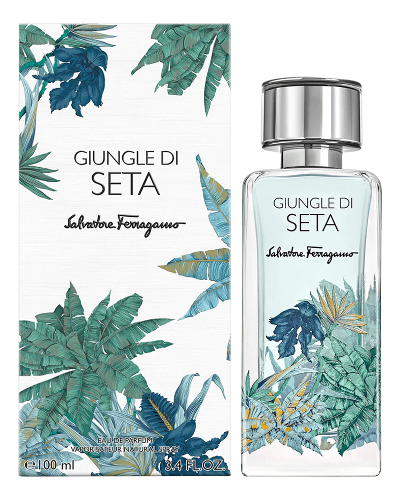 В ароматической композиции Salvatore Ferragamo Giungle Di Seta (Джунгли) флора джунглей с древесными оттенками создает интенсивные зеленые и цветочные ноты. Все источает жизненную силу экзотической растительности. Яркая душа мускуса усиливает контраст между хрустящим зеленым горошком и бархатистым сердцем из аромата цветов пиона.
