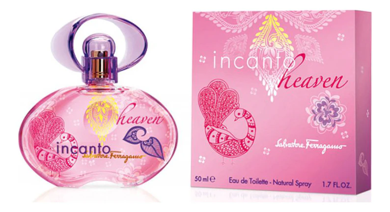 Ослепительный, веселый и утонченный женский аромат Salvatore Ferragamo Incanto Heaven от дома Salvatore Ferragamo появился в продаже в 2007 году. Обворожительная чувственность, чарующая женственность и яркая непосредственность, - все это аромат Incanto Heaven, способный создать ауру загадочности, соблазнительности и очарования. Аромат диковинному и фантастическому саду, где благоухают волшебные цветы и прогуливаются прекрасные павлины. Этот аромат такой же сказочный и божественный, как неподражаемый парфюм Salvatore Ferragamo Incanto Dream. Удивительный, чудный и уникальный Сальваторе Феррагамо Инканто Хэвен представлен в красочном и великолепном розовом флаконе, добавляющем аромату еще больше магического обаяния и интригующего шарма.