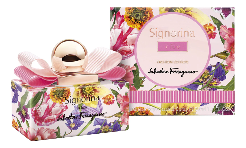 Signorina In Fiore Fashion Edition — элитная туалетная вода с цветочно-фруктовым ароматом для женщин, созданная в 2018 году парфюмером Emilie Bevierre-Coppermann для итальянского бренда Salvatore Ferragamo. Яркий жизнерадостный аромат – новый вариант роскошного женского парфюма Signorina In Fiore (2017 года) и предназначен для юных нежных и стильных модниц.