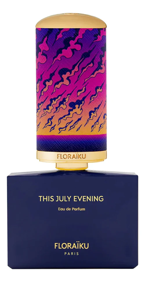 This July Evening — волнующий и утонченный восточно-цветочный унисекс-парфюм, выпущенный в 2020 году французским нишевым парфюмерным брендом Floraiku. Аромат заключен в характерный для бренда прямоугольный флакон с высокой расписной крышечкой. На этот раз флакон окрашен в темно-синий цвет, а крышечка украшена принтом закатного неба, окрашенного в красно-оранжевые тона.