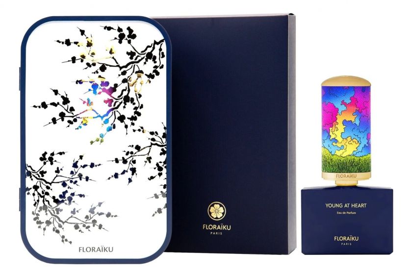 Аромат Floraiku Young At Heart заключен в яркий оригинальный флакон, крышечка которого украшена разноцветным ярким радужным абстрактным рисунком в восточном стиле.