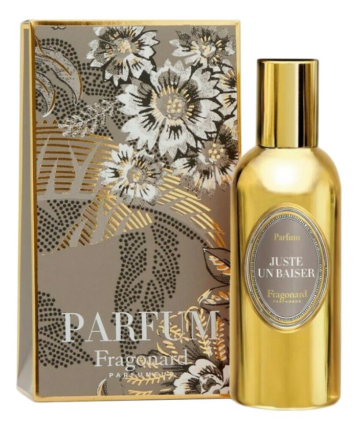 Парфюм Fragonard Juste un Baiser Parfum 2024 выпускается в золотистых алюминиевых флаконах и коробке с гобеленовым флористическим рисунком.