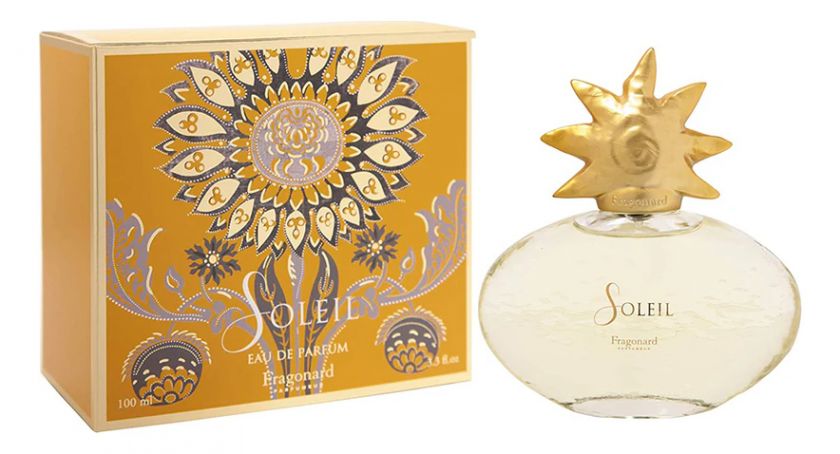 Fragonard Soleil (духи Фрагонар Солнце) – сладостный, очаровательный и светлый аромат, созданный в 1997 году известным торговым домом Fragonard (Фрагонар). Этот женский парфюм насыщен свежестью дивных цветочных бутонов, согретых ласковым, теплым солнцем. Так же как аромат Fragonard Grain de Soleil, он похож на эликсир, созданный из чистого золота солнечных лучей. Почувствуйте прикосновение лета, вдыхая запахи роскошных роз, прохладной сирени, утонченной лилии и хрупкого жасмина. Ощутите вместе с Fragonard Soleil солнечное тепло на своей коже, вспомните яркие краски и счастливые летние дни!
