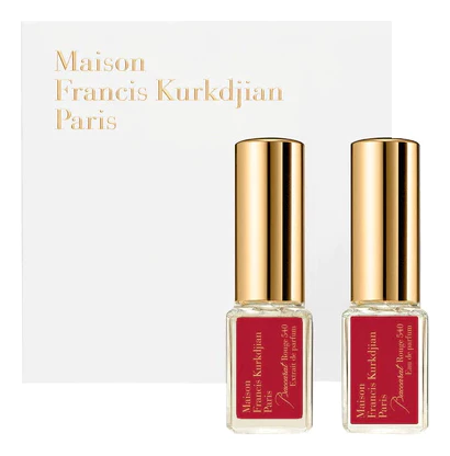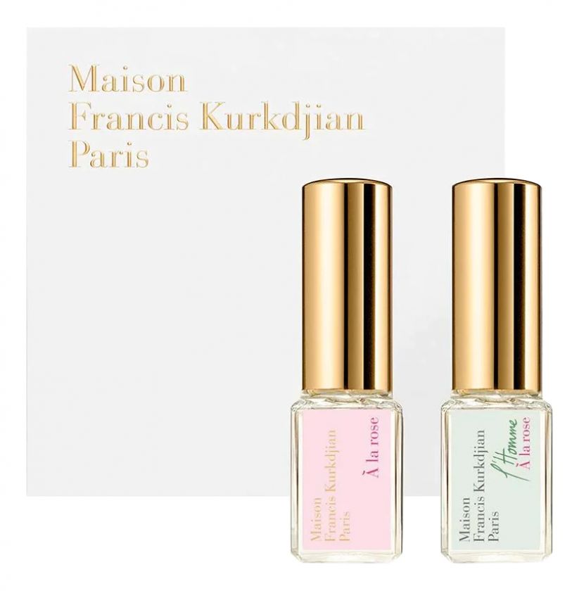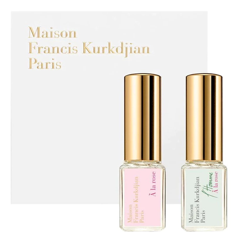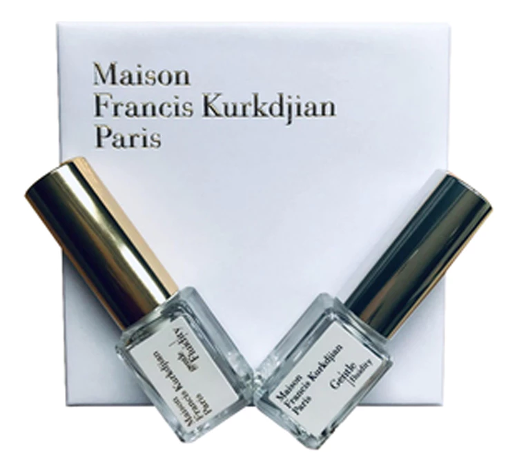 Francis Kurkdjian Set — роскошный парфюмерный набор из двух нишевых мини ароматов для женщин и мужчин, заключенный в элегантный подарочный футляр, представлен знаменитым французским парфюмерным брендом Francis Kurkdjian.