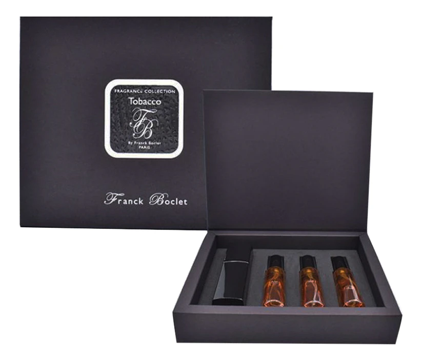 В верхних нотах Tobacco от Franck Boclet играют табак, имбирь и слива. Сердце раскрывается аккордами бобов тонка, гвоздики и кедра. Венчает композицию база из мотивов бензоина, амбры, ветивера, мускуса и ванили.