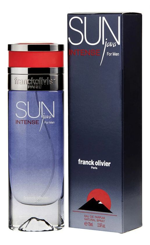 Franck Olivier Sun Java Intense — нишевая парфюмерная вода с фужерным восточно-пряным ароматом для мужчин, представленная в 2019 году французским парфюмерным брендом Franck Olivier. Позитивный, эротичный и динамичный аромат Sun Java Intense – посвящен бесконечной храбрости, бесстрашию и истинной мужественности молодых современных мужчин, которые отважно преодолевают любые препятствия для достижения поставленных целей.