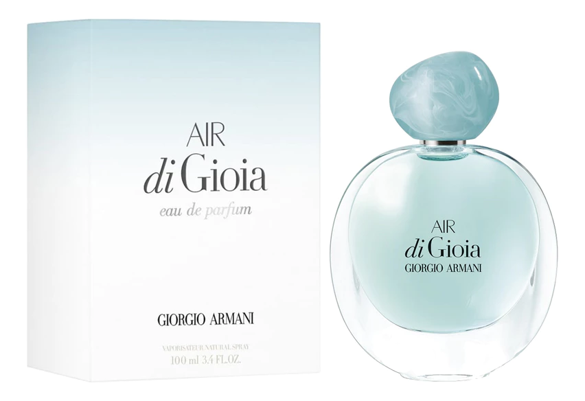 Air di Gioia – легкий, переливчатый и волнующий женский цветочно-шипровый парфюм, выпущенный в 2016 году под маркой знаменитого модного дома Armani. Аромат продолжат тему, начатую в 2010 году парфюмом Acqua di Gioia, и на этот раз посвящен стихии воздуха, символизируя легкий ласковый ветерок, который душистыми упругими струйками ласкает ваше тело на берегу теплого моря.