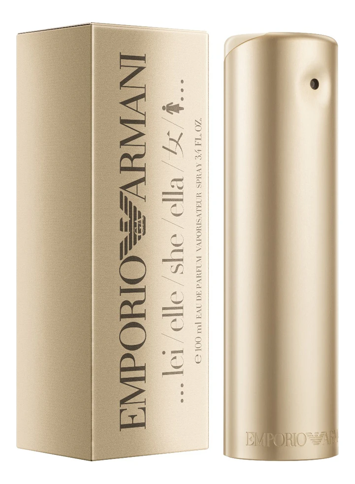 Emporio Armani She — яркий, сочный и многогранный женский восточно-цветочный аромат, выпущенный в 2020 году итальянским модным домом Giorgio Armani. Упрятанный в лаконичный золотистый цилиндрический флакон, парфюм отражает концепцию бренда, произведшую революцию в моде, доказав, что роскошное отнюдь не означает неудобное и тесное. Парфюм отличается сложностью и многооттеночностью и при этом мягко и органично вписывается в женский образ, внося в него новые оттенки и подчеркивая особый стиль своей хозяйки.