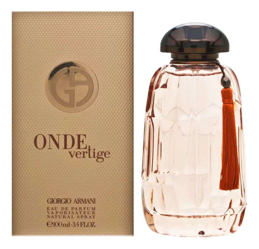 Коллекция из трех ориентальных ароматов «Onde» вдохновлена давними ритуалами и обычаями стран Востока, а также самыми шикарными и прекрасными его жемчужинами – женщинами! Каждый дизайнерский флакон оригинален и хранит часть души и характера Азиатских стран, которым он посвящен. Giorgio Armani Onde Vertige (духи Джорджио Армани Онде Вертиж), созданный в 2008 году, посвящен Индии с ее роскошными дворцами и экзотическими храмами. Это возвышенное, увлекательное зрелище, не сравнимое больше ни с чем – чарующие женщины Индии, одетые в разноцветные сари из тончайших шелков. Они нежны и чувственны, своей красотой могут околдовать кого угодно, сводя с ума пластичностью и грациозностью. Onde Vertige – головокружительный соблазн! Также в эту ориентальную коллекцию вошел замечательный аромат Onde Mystere.