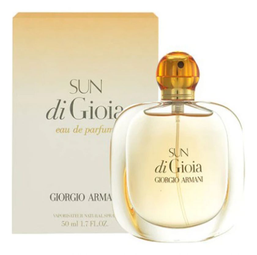 Sun di Gioia - ласковый и волнующий восточно-цветочный парфюм, выпущенный в 2016 году известным модным домом Armani. Своим выходом, аромат продолжает тему стихий воды, воздуха и огня, начатую в 2010 году парфюмом Acqua di Gioia. На этот раз парфюм посвящен огню, но не стремительной и опасной стихии, а ласковым, теплым лучам солнца, которые нежно касаются нашей кожи на золотистом пляже тропического острова.