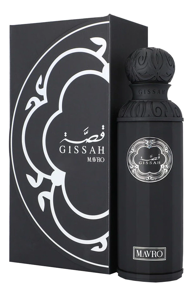 Gissah Mavro — древесно-пряный мужской аромат с искорками цитрусовых нот, выпущенный в 2024 году арабским парфюмерным брендом Gissah. Это не просто аромат, а уверенный почерк современного мужчины: сдержанного, но страстного, рационального — с искрой безумства. Название, отсылающее к древнему винограду Mavro («чёрный» на греческом), задаёт тон: роскошь, укоренённая в земле, и тайна, окутанная светом. Это аромат внутренней силы, интеллектуального напора и тонкого чувства стиля.