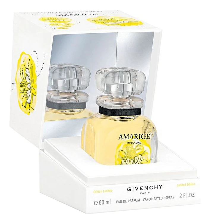 Givenchy Harvest 2009 Amarige Mimosa («Живанши. Урожай 2009. Амариж Мимоза»). Этот роскошный женский аромат представлен именитым парфюмерным домом Givenchy в 2010 году. Весенний аромат вошел в «Урожайную» коллекцию ароматов и выпущен лимитированным тиражом.