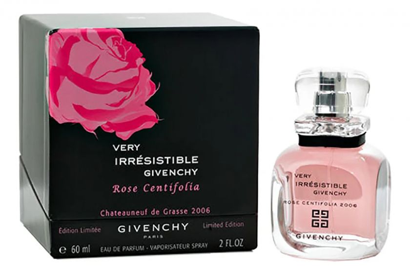 Givenchy Very Irresistible Rose Centifolia de Chateauneuf de Grasse 2006 («Живанши. Неотразимая. Роза Сентифолия де Шатоне Грасс 2006»). Этот цветочный букет женского аромата был представлен парфюмерным домом Givenchy в 2006 году. Аромат вошел в знаменитую коллекцию 2006 года Harvest Collection. И был выпущен ограниченным тиражом.