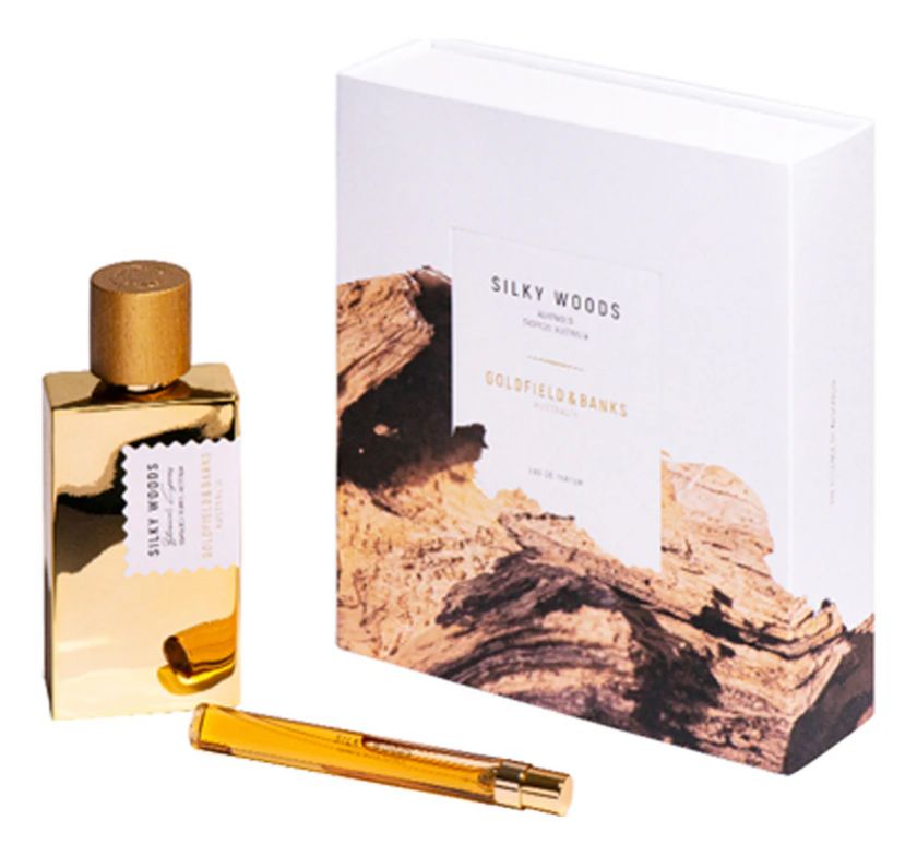 Набор Goldfield & Banks Australia Silky Woods 2024 Christmas Set от австралийского парфюмерного бренда Goldfield & Banks Australia содержит парфюмерную воду Silky Woods объемом 100 мл и дорожный спрей объемом 10 мл с тем же ароматом.