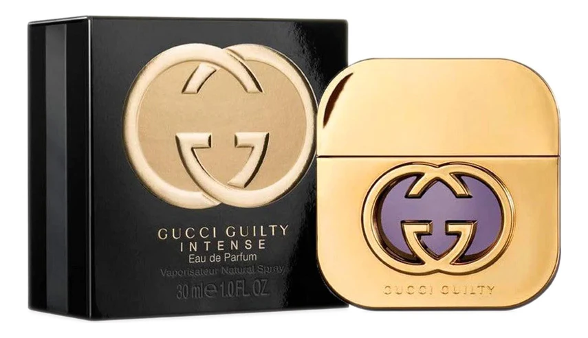 Золотой плоский флакончик Gucci Guilty Intense Woman мгновенно привлекает внимание, также как и аромат, содержащийся в нем. Этот волшебный «эликсир» включает в себя многие природные запахи, здесь присутствует прозрачный мандарин, дурманящий розовый перец, сердце композиции - весенние цветы фиолетовой сирени и пачули. Чувственные восточные ароматы амбры и мускуса завершают пирамидку.