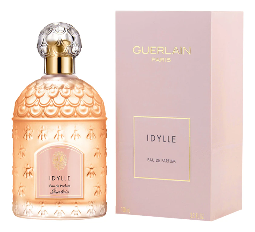 Любовь всегда правила миром. Удивительные, трагичные и нежные истории любви воспеваются поэтами и писателями, отображаются в книгах, оживают на сценах, чтобы предстать в новом образе. Истории любви предстают и в мире ароматов. Античная легенда, история любви Зевса и Данаи стала источником вдохновения на создание цветочного, древесно-мускусного аромата Guerlain Idylle. Болгарская роза – главная нота в ароматной мелодии. Лучшие сорта роз были подобраны для парфюма, чтобы сделать акцент на главной идее парфюма – счастливый миг любви. Тема любви раскрывается также в парфюме Guerlain Love Is All. Аромат Guerlain Idylle был создан в 2009 году. Начало ароматной композиции окутывает цветочной, нежной дымкой из сирени, лилии, пиона. Талантливый французский дизайнер создал золотой флакон в виде капли слезы. Это слеза от счастья, от любви. Верхние нотки: роза, фрезия, личи, малина. Сердечные нотки: ландыш, жасмин, лилия, пион. Лист пачули и мускус представляют базовые аккорды аромата.