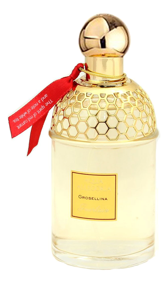 Очаровательный, искрящийся аромат красной смородины представлен в парфюме Guerlain Aqua Allegoria Grosellina. Цитрусовый, цветочный, зеленый аромат был создан в 2005 году. Сочный, яркий, запоминающийся аромат солнечного, прекрасного летнего дня. Парфюмерная линия Allegoria отличается тем, что каждый непревзойденный парфюм раскрывается одним либо парой компонентами. Например, в аромате Guerlain Aqua Allegoria Angel-Lilas, это нежные и чувственные нотки лилии и анжелики. Сладкая, вкусная нота малины дополняет парфюмерную композицию Aqua Allegoria Grosellina (Вода. Аллегория Гроселлина), а нотки цветов акации и белого чая делают аромат свежим, нежным и ярким. Возможно, кого то аромат насторожит, и он будет непонятным, кто то будет удивлен и поражен, но никто не останется равнодушным. Верхние нотки: калабрийский бергамот, сицилийский мандарин и лимон. «Сердечные» нотки: красная смородина, белый чай и ароматная малина.