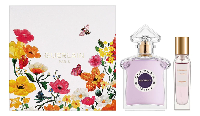 Аромат Guerlain Insolence был создан для императрицы Евгении, жены Наполеона III, в 1853 году. Мастером-парфюмером, стоящим за этим ароматом, был ни кто иной, как Пьер-Франсуа-Паскаль Герлен. Новая версия аромата более интимна и сдержанна, обладает особой вневременной изысканностью и уникальной красотой звучания. Аромат также имеет уникальный розово-фиолетовый флакон с фактурным изображением пчел, который отсылает к впечатляющему французскому мастерству стеклодувов.